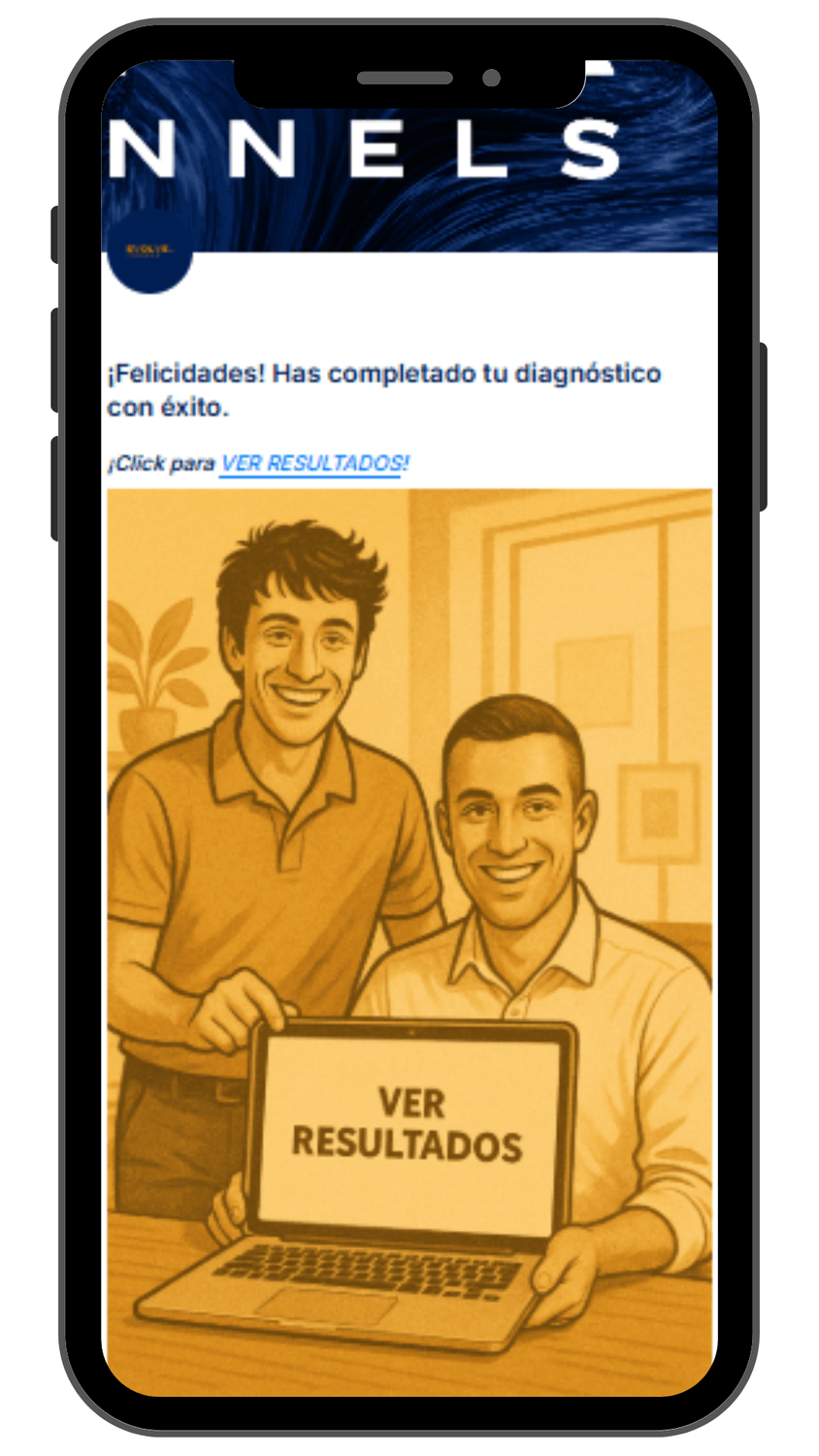 Cuando completes el cuestionario, haz click en el enlace "VER RESULTADOS" y automáticamente serás redirigido a la sección que mejor se adapte a las necesidades de tu negocio