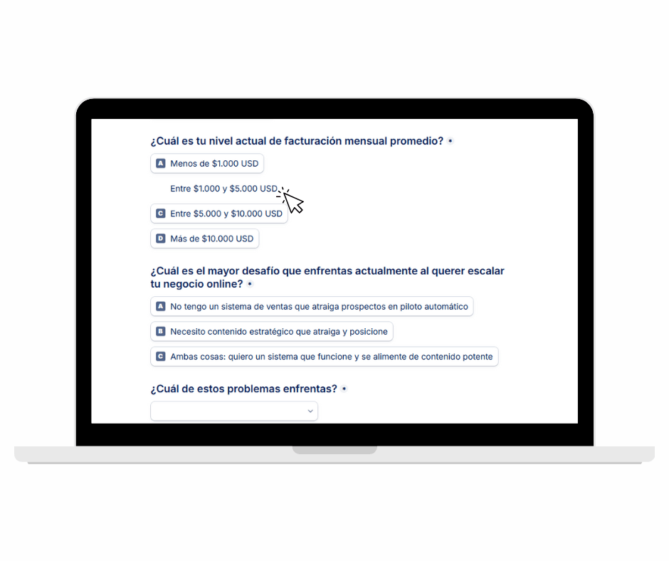 E instantáneamente serás redirigido a un cuestionario gratuito para saber qué necesita tu negocio para comenzar a vender en automático.